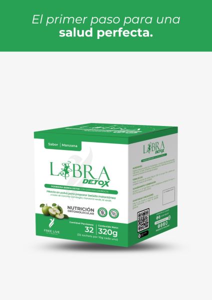 Es una fórmula elaborada a base de insumos seleccionados que le dan su característica ortomolecular, es decir, con efectos nutricionales y terapéuticos y con un delicioso sabor a manzana verde. Dirigida a todo público para realizarse una limpieza profunda de colon y a la vez una desintoxicación de nuestro ph sanguineo. Mejorando exponencialmente las condiciones para un mejor aprovechamiento de los nutrientes, especialmente los productos ortomoleculares de FREE LIVE No consumir mujeres embarazadas o que estén dando de lactar, tampoco hacerlo con niños menores de 1 año de edad.